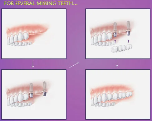 The alternative is a bridge on implants. Healthy, adjacent teeth are left untouched and titanium implants are used, acting just like natural tooth roots.